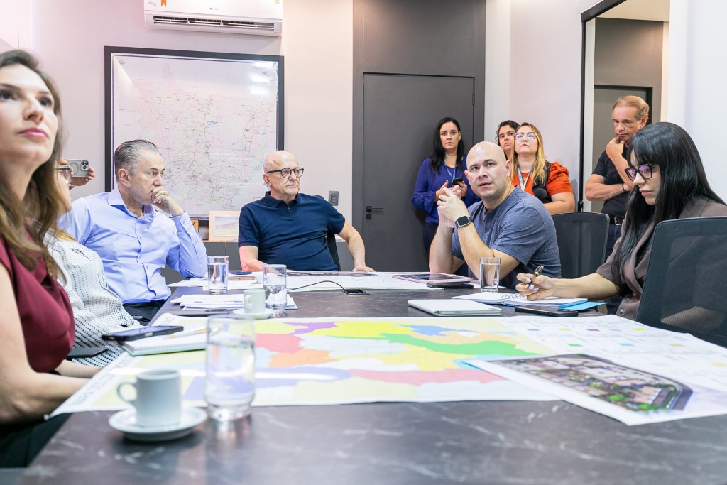 O prefeito de Cuiabá, Abilio Brunini, apresentou na manhã desta sexta-feira (29) o projeto do Instituto de Longa Permanência para Idosos (ILPI) ao desembargador Orlando de Almeida Perri e ao governador em exercício, Otaviano Pivetta. O encontro ocorreu no Palácio Paiaguás, sede da vice-governadoria do Estado, e reuniu representantes do Judiciário, Executivo e demais instituições envolvidas na iniciativa.