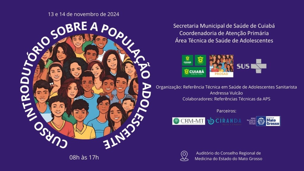 Nos dias 13 e 14 de novembro, a Secretaria Municipal de Saúde de Cuiabá, através da Referência Técnica de Saúde dos Adolescentes da Atenção Primária de Saúde, realizará o Curso Introdutório sobre a População Adolescente. Voltado para profissionais enfermeiros, médicos e equipes multiprofissionais que atuam na Atenção Primária à Saúde, o curso visa qualificar os profissionais para lidar com as demandas de saúde específicas da população adolescente. As aulas ocorrerão das 8h às 17h, no auditório do Conselho Regional de Medicina do Estado do Mato Grosso (CRM-MT), localizado na Rua E, S/N, no Centro Político Administrativo, em Cuiabá.