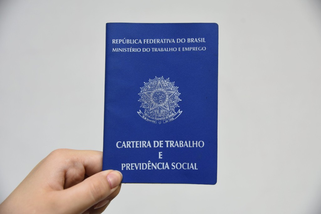 A foto mostra uma mão segurando um Carteira de Trabalho e Previdência Social, que é um documento necessário para contratação profissional.