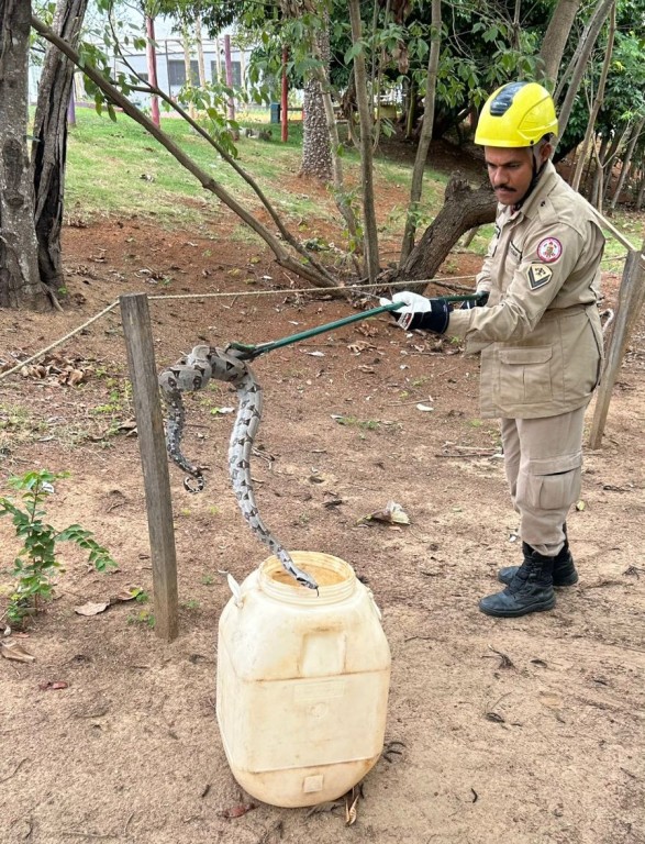 O Corpo de Bombeiros Militar de Mato Grosso (CBMMT) foi acionado, na manhã desta sexta-feira (18.10), para realizar o resgate de uma jiboia que estava dentro do Centro Educacional Paulo Freire, no município de Campo Verde (a 131 km de Cuiabá).