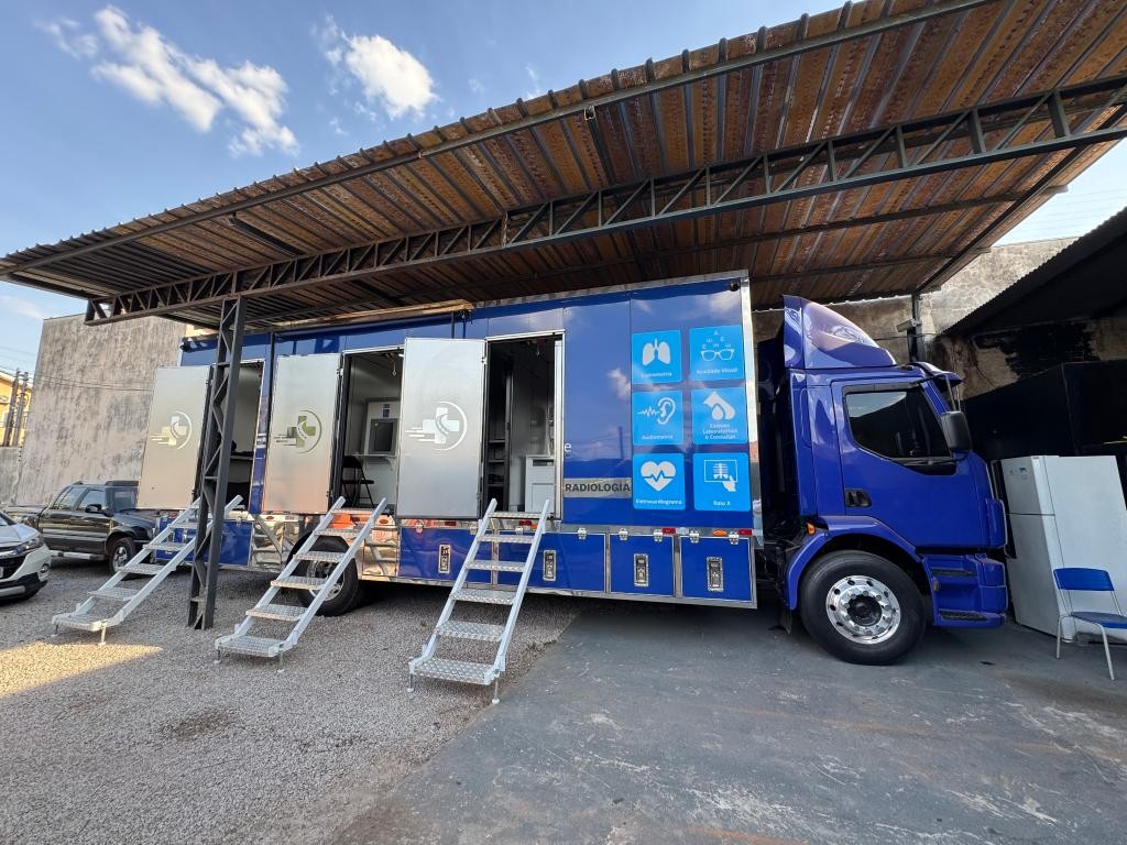 A unidade móvel da Saúde On é uma clínica médica sobre duas rodas, com cerca de 12m de comprimento, equipada com raio-x digital, audiometria, eletrocardiograma, entre outros. A aquisição dos equipamentos, especialmente o aparelho de raio-x, só se concretizou com o financiamento da Desenvolve MT. O crédito também viabilizou a parte eletrônica, como ar condicionado e a infraestrutura necessária para transformar o caminhão em uma clínica completa, com três salas fixas e toda a adequação técnica exigida.