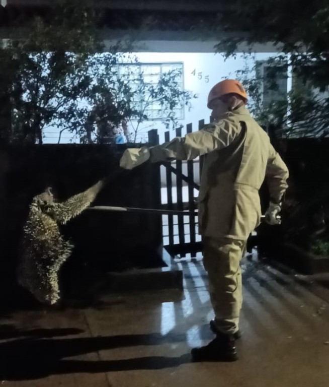 O Corpo de Bombeiros Militar de Mato Grosso (CBMMT) resgatou na noite deste sábado (19.10) um porco-espinho que estava em uma árvore na rua Silvio Hometto, no município de Primavera do Leste (a 238 km de Cuiabá).