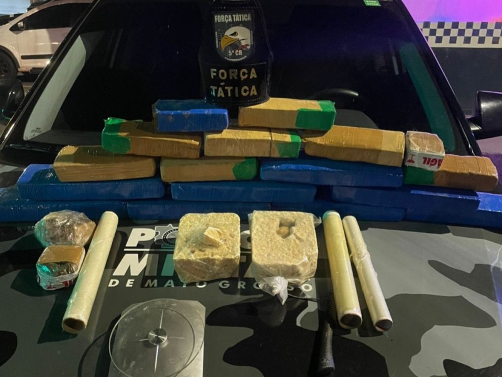 Equipes da Força Tática localizaram e apreenderam 18 tabletes, entre substâncias análogas a maconha e pasta base de cocaína, em Barra do Garças. Os entorpecentes foram encontrados dentro de um tambor, no quintal de uma residência, na noite desta sexta-feira (29.11).