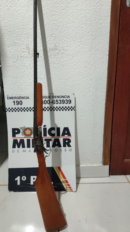 A equipe do 1º Pelotão de PM de Apiacás estava em patrulhamento urbano, por volta de 22h, e se deparou com um homem em posse de uma espingarda agredindo um casal, utilizando o cano da arma de fogo. Rapidamente os policiais desceram da viatura e interromperam as agressões.