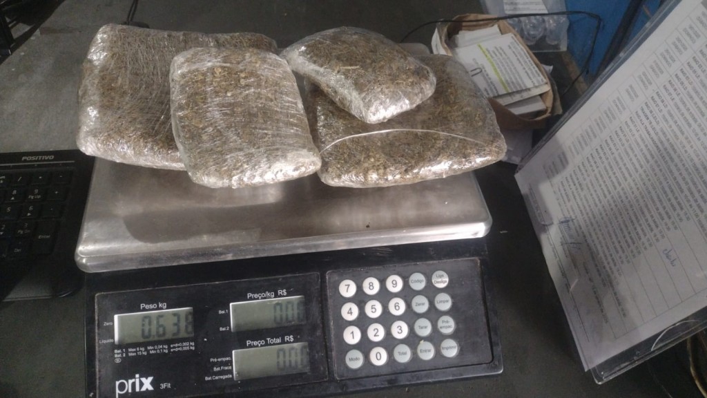 Ela foi levada para a revista íntima/visual, onde foram encontrados quatro pacotes de maconha, que pesaram, juntos, 638 gramas, e dois de fumo.