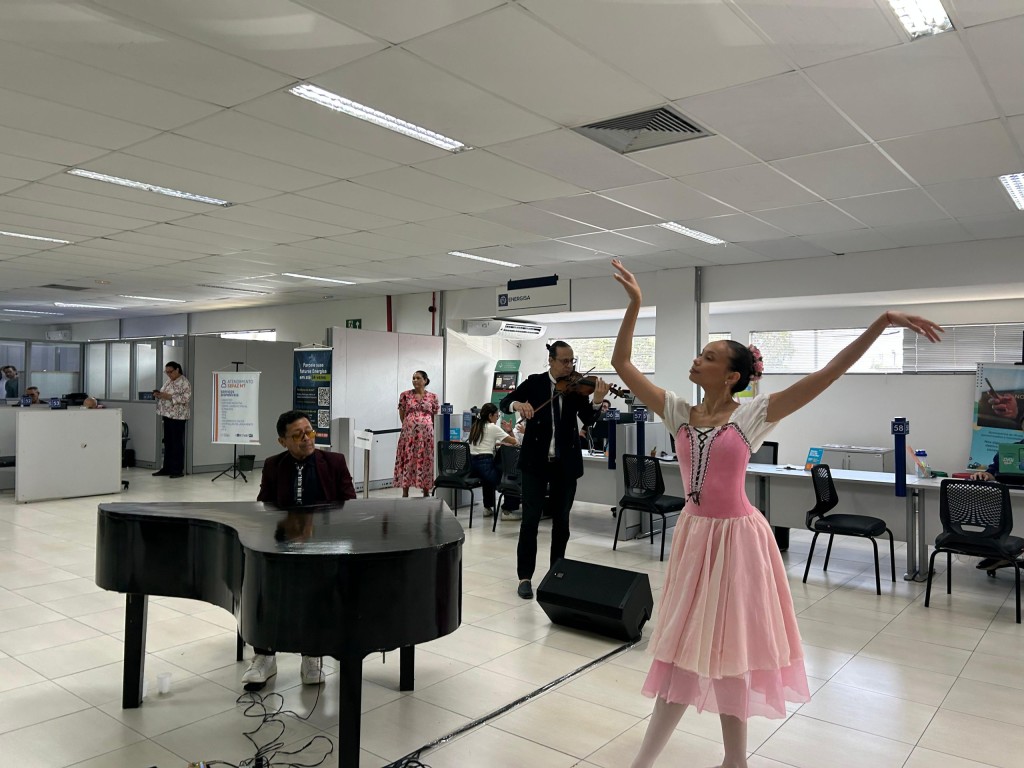 As unidades do Ganha Tempo de Cuiabá e Várzea Grande se tornaram palco do Projeto Piano Gente. As apresentações ocorrem no período vespertino, das 14h às 16h. A intervenção cultural, que combina piano de cauda, saxofone, violino e a leveza de uma bailarina, tornam a experiência do atendimento nas unidades ainda mais especial.