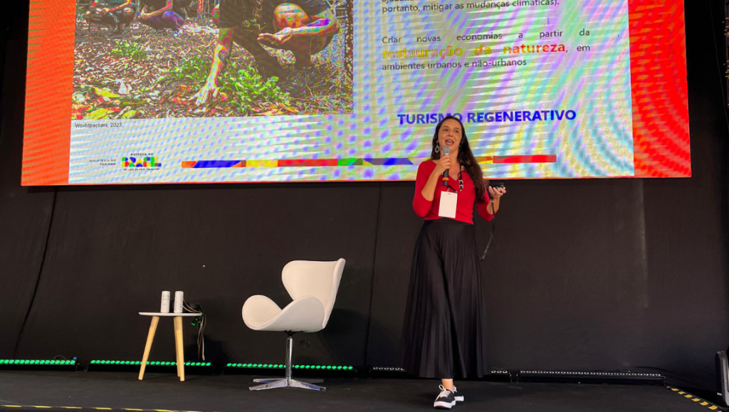 Durante a programação, a coordenadora-geral de Turismo Sustentável e Responsável do Ministério do Turismo, Carolina Fávero, apresentou um panorama da situação climática global e projeções quanto à emissão de gases de efeito estufa para as próximas décadas, destacando seus possíveis impactos sobre a biodiversidade e a atratividade turística.