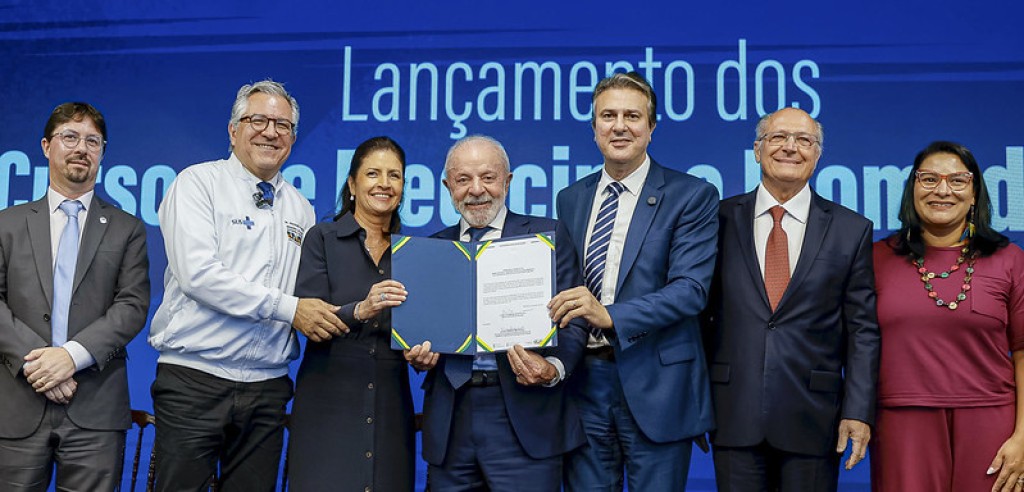 O presidente da República, Luiz Inácio Lula da Silva; o vice-presidente Geraldo Alckmin; e o ministro da Educação, Camilo Santana, participaram, nesta quinta-feira, 22 de maio, do lançamento dos cursos de graduação em medicina e biomedicina da Faculdade de Ciências da Saúde Sírio-Libanês (FSL), em São Paulo (SP). A instituição obteve nota máxima para os dois cursos na avaliação para autorização de funcionamento emitida pelo Ministério da Educação (MEC). Os cursos ofertarão 100 vagas anuais, cada, das quais 10% serão gratuitas e preenchidas após seleção realizada pela faculdade.