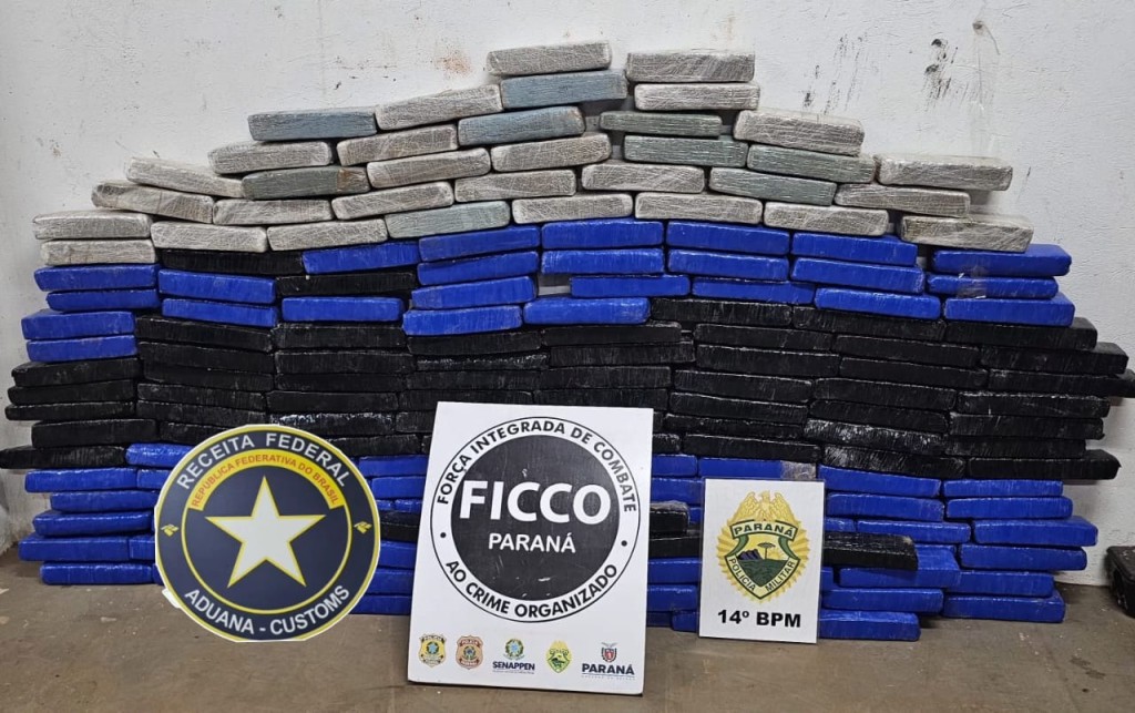 Foz do Iguaçu/PR. A Força Integrada de Combate ao Crime Organizado do Paraná (FICCO/PR), em ação conjunta com a Polícia Militar do Paraná, equipes do Batalhão de Polícia de Fronteira (BPFRON), ROCAM e POP do 14º BPM e Receita Federal, apreendeu, na manhã desta terça-feira (2/12), 105,6 kg de maconha e prendeu dois homens por tráfico internacional de drogas em Foz do Iguaçu/PR.