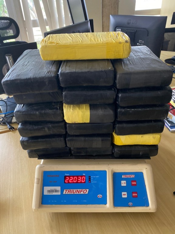 Durante a inspeção, policiais federais localizaram o entorpecente acondicionado em tabletes, que apresentaram resultado positivo para cocaína em teste preliminar.