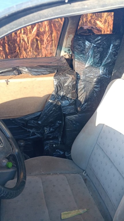 Os condutores ao perceberem a presença policial empreenderam fuga, abandonando os carros logo em seguida em um milharal, com 15 caixas de cigarros em cada veículo.
