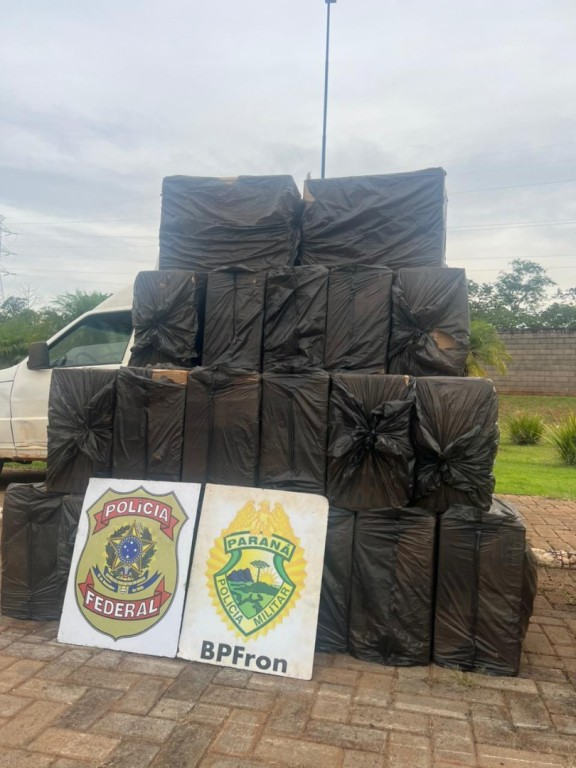 Guaíra/PR. Na sexta-feira, 28/11, a Polícia Federal, em operação conjunta com o BPFRON da Polícia Militar do Paraná, efetuou a apreensão de um veículo carregado com caixas de cigarros. Em diligência contínua, a equipe, seguindo os rastros da estrada rural, encontrou mais caixas deixadas em meio a uma pequena mata, totalizando cerca de 40 caixas de cigarros contrabandeados.