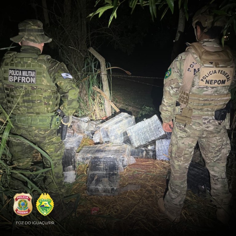Foz do Iguaçu/PR. Policiais federais e policiais militares apreenderam, na madrugada desta quinta-feira (22/05), cerca de 769 kg de maconha em uma trilha que acessa a margem do rio Paraná, durante patrulhamento nas áreas de portos clandestinos.