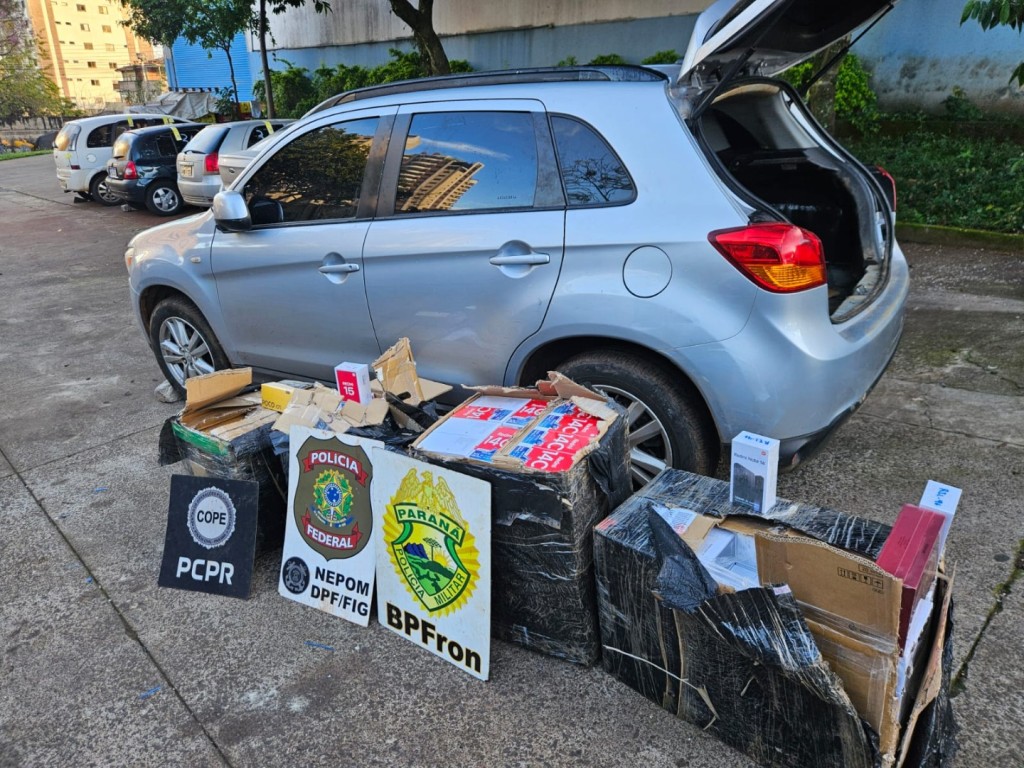 No veículo abandonado, um Mitsubishi ASX, havia 7 volumes contendo, aproximadamente, 720 smartphones e dezenas de cigarros eletrônicos. O veículo e a carga de eletrônicos foram apreendidos e encaminhados para a Receita Federal do Brasil para os procedimentos cabíveis.