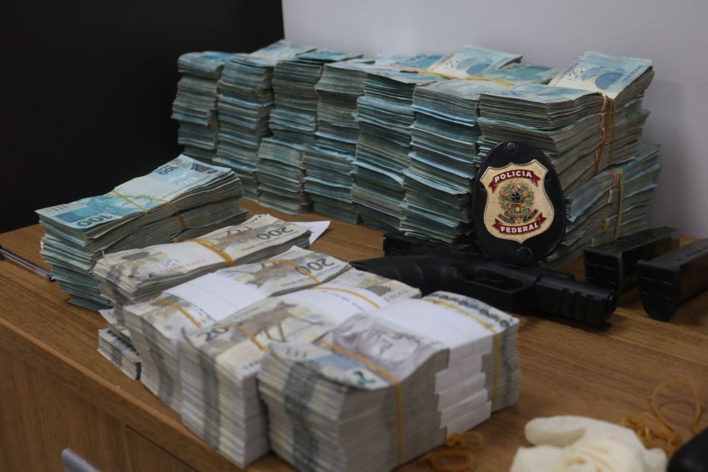 O dinheiro estava em uma mala com um funcionário público, que foi preso em flagrante. O crime eleitoral foi evidenciado pelo contexto da investigação sigilosa da PF, que sugere que seria usado para compra de votos. O indivíduo também foi autuado por porte ilegal de arma, pois estava com uma pistola e quatro carregadores municiados, em desacordo com a legislação vigente. Também foram apreendidos aparelhos celulares.