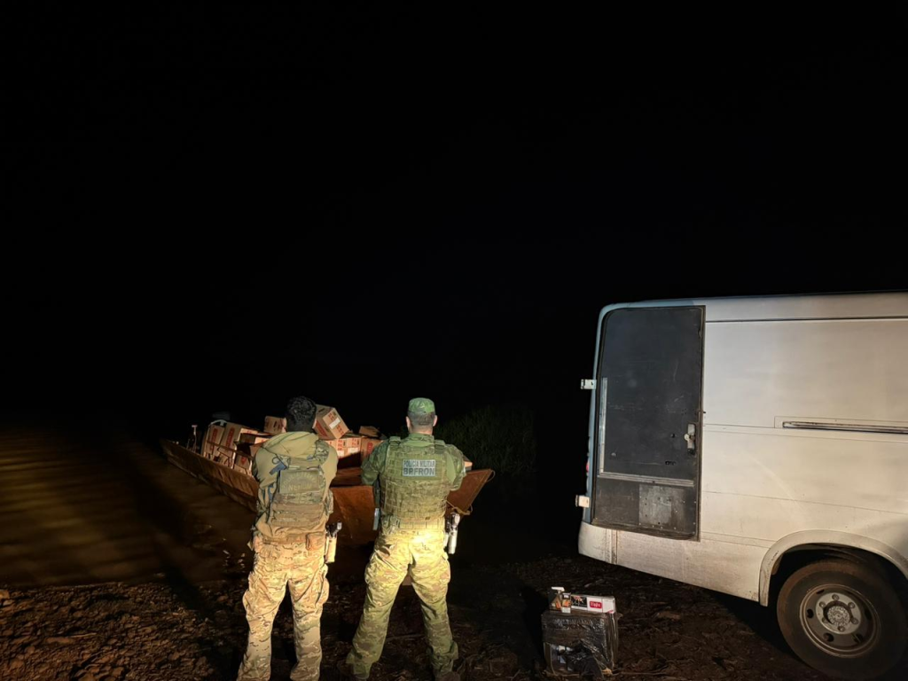 Mercedes/PR. Nesta quinta-feira (18/12), a Polícia Federal e a Polícia Militar do Paraná, em uma ação integrada no âmbito da Operação Protetor, apreenderam 10.0000 pacotes de cigarros paraguaios e 450 unidades de cigarros eletrônicos, durante patrulhamento no Lago de Itaipu/PR.
