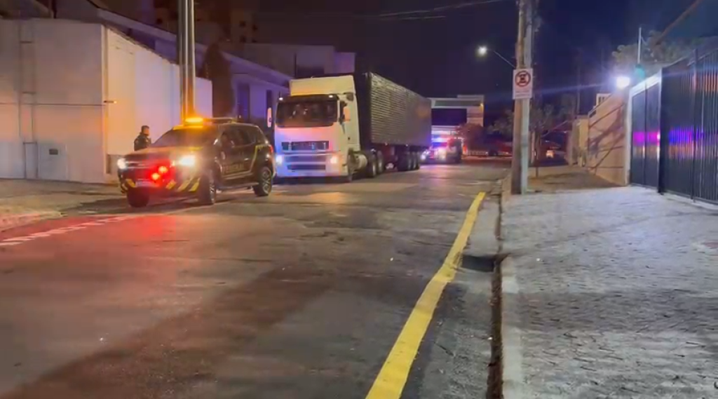 A ação foi deflagrada por volta das 19h, onde um caminhão e seu semirreboque foram interceptados.