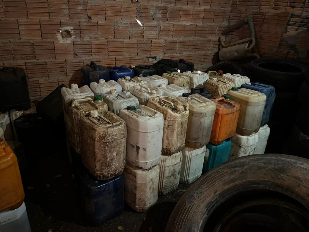 No estabelecimento, os policiais, apreenderam cerca de 1.200 litros de combustível, tipo diesel, armazenados de forma ilegal.