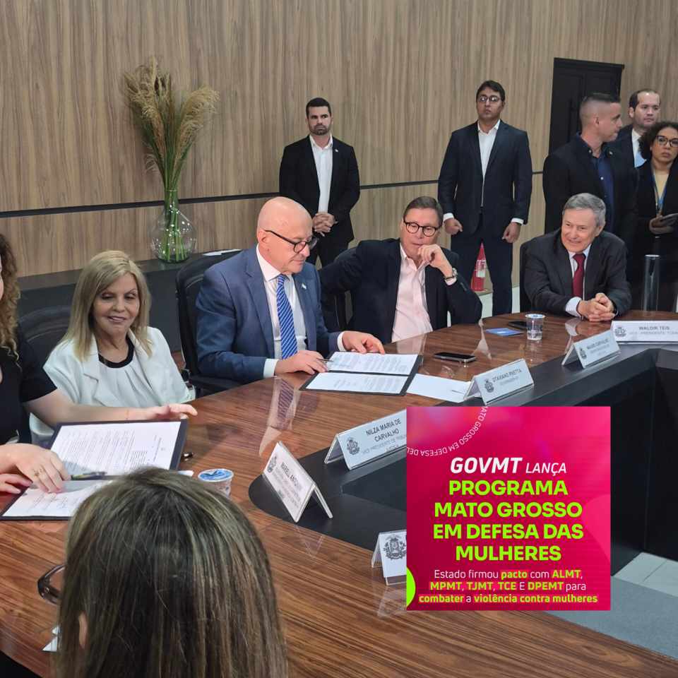 O Governo de Mato Grosso lançou, nesta sexta-feira (17), um amplo pacote de medidas para fortalecer o combate à violência contra a mulher e reduzir os casos de feminicídio no Estado. As ações integram o programa “Mato Grosso em Defesa das Mulheres” e reúnem esforços do Executivo, Judiciário, Legislativo, Ministério Público, Tribunal de Contas e Defensoria Pública.