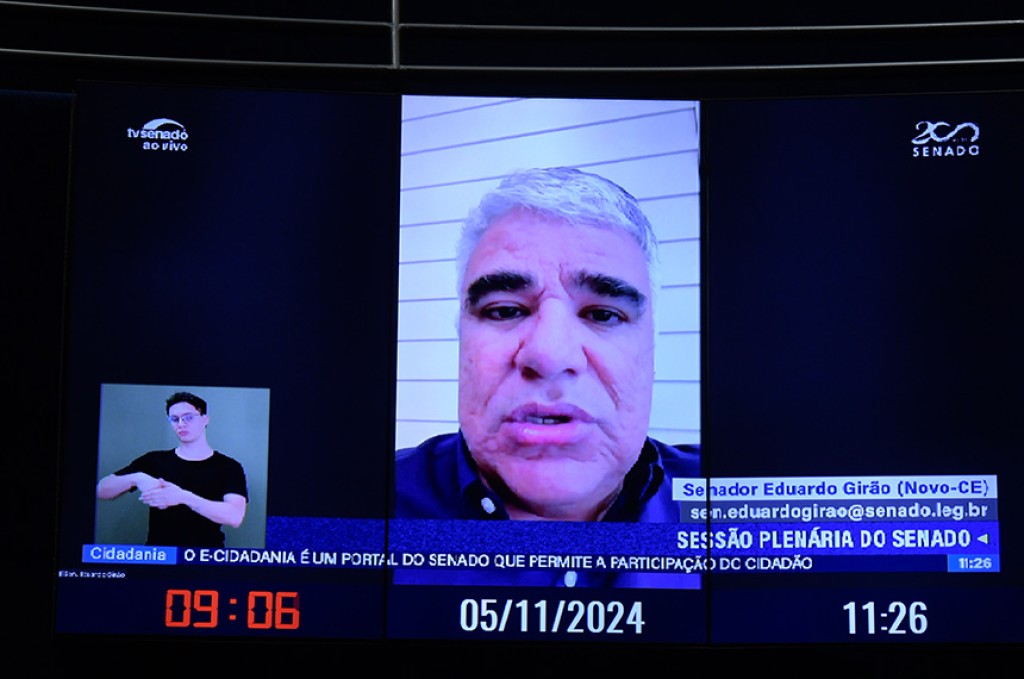 O senador Eduardo Girão (Novo-CE) criticou, em pronunciamento nesta terça-feira (5), o fato de o Supremo Tribunal Federal (STF) ter marcado para o dia 27 de novembro o julgamento de três ações que tratam da responsabilidade de provedores de internet na remoção de conteúdos com desinformação e disseminação de discurso de ódio de forma extrajudicial, sem determinação expressa pela Justiça. Para o parlamentar, a medida representa mais uma interferência do STF no Poder Legislativo, legislando sobre as redes sociais.