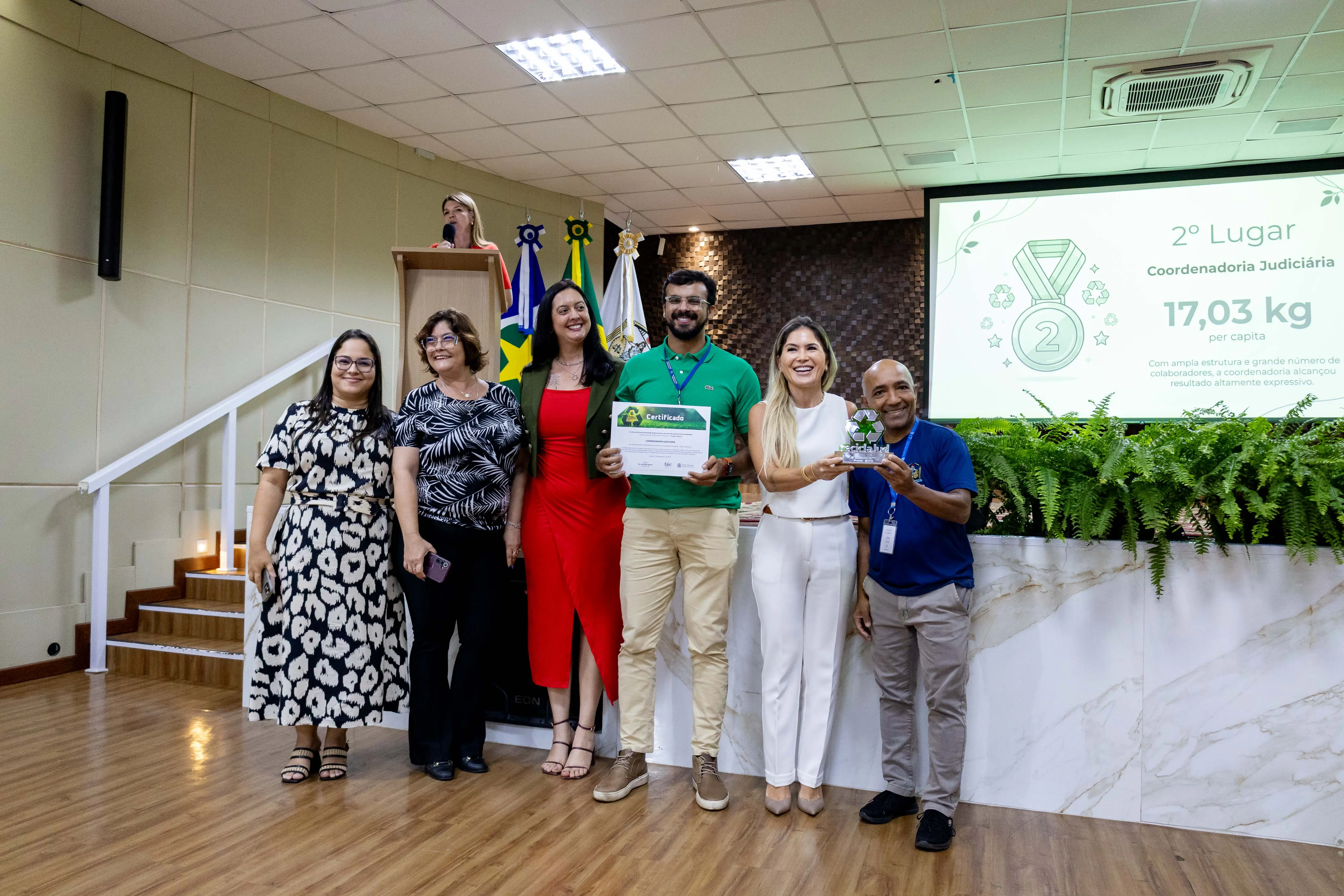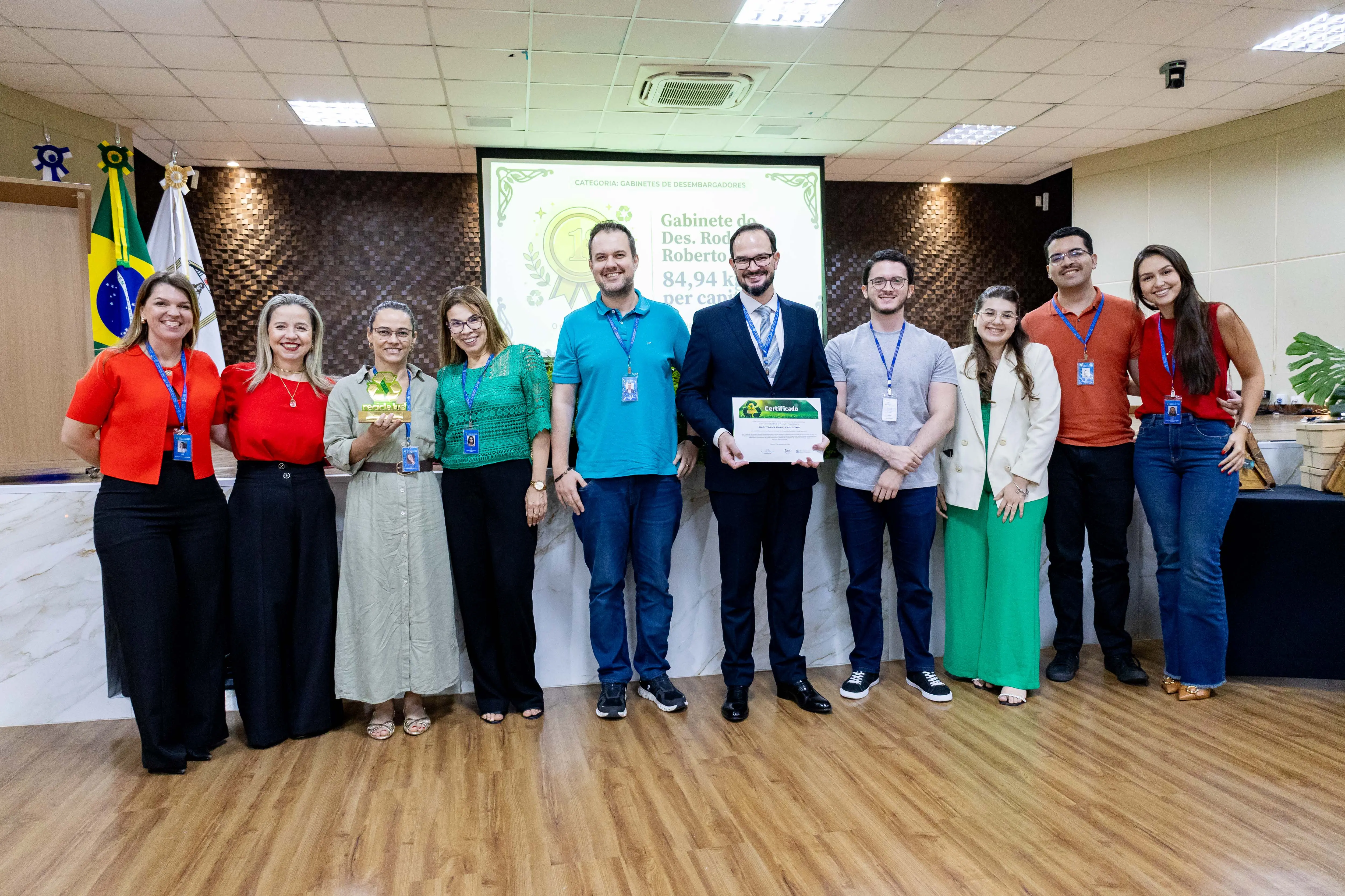 Na categoria Gabinetes, o primeiro lugar foi conquistado pelo gabinete do desembargador Rodrigo Roberto Curvo, coordenador do Núcleo de Sustentabilidade, com 84,94 quilos per capita.